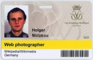 Als sich am 19. Juni die schwedische Kronprinzessin Victoria und Daniel Westling in Stockholm das Jawort gaben, waren unter den 500.000 Besuchern auch etwa 10 Wikipedianer, die diese wahrscheinlich größte Hochzeit seit 1981 für Wikimedia Commons dokumentierten. Zwei Fotografen, Jan und ich, hatten mehrere Wochen im voraus durch Empfehlungsschreiben von Wikimedia Sverige bzw. Wikimedia Deutschland zusammen mit etwa 2300 anderen Pressevertretern Akkreditierungen als Fotografen erhalten. Mit diesen war es dann möglich, sich drei Wochen vor der Hochzeit auf Fotopools zu bewerben und dabei zwei Plätze für Wikimedia zu erhalten. Zwei Wochen vor der Hochzeit konnten dann die Akkreditierungsausweise bzw. Poolkarten beim Außenministerium abgeholt werden. Diese ermöglichten u.a. den Zugang zu zwei Pressezentren und einem umfangreichen Programm mit Pressebriefings und -konferenzen, sodass bereits hier mehrere Biografien bebildert werden konnten.