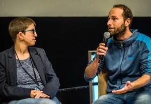 Julia Reda (EU-Parlament) und Alexander Sander (digiges) diskutieren über zivilgesellschaftliche Interessenvertretung in Brüssel. Foto: Jason Krüger, CC-BY-SA 4.0