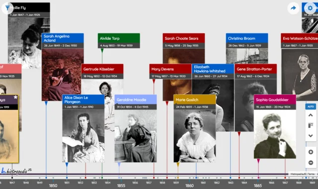 Wissensaufbereitung mal anders: Histropedia-Timeline wichtiger Fotografinnen, die in Wikidata verzeichnet sind. Bild: Sandra Fauconnier, Histropedia – timeline of female photographers, CC BY-SA 4.0