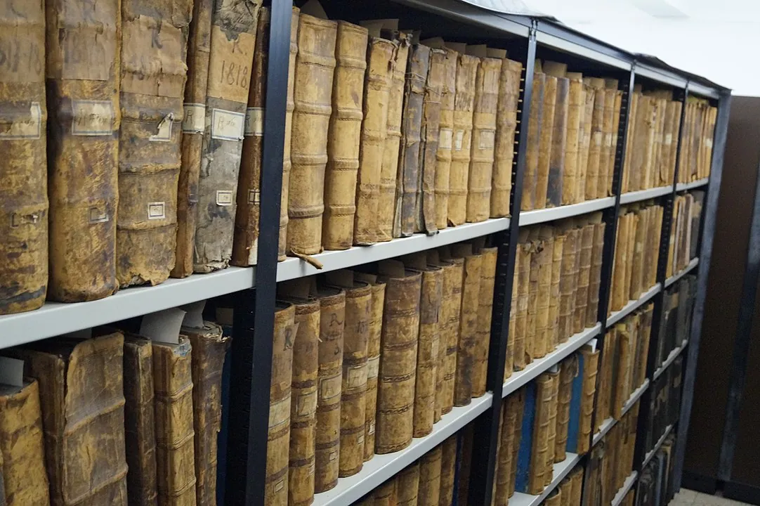 Ein Raum voller Regale. Sehr viel Staub. Wenig Licht. Maximal Kerzen. Vielleicht sogar: sichtbares Mauerwerk. Zettelkästen, Findbücher. Schrullige Archivar*innen.