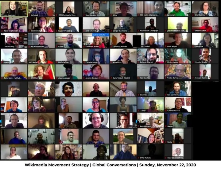 In den sog. „Global Conversations“ im November und Dezember 2020 sowie Januar und Februar 2021 kamen mehrere Hunderte Wikimedianer*innen aus der gesamten Welt zusammen. Es ging darum, die Vielzahl der Initiativen aus der Movement-Strategie zu priorisieren und den Weg zur Umsetzung festzulegen.