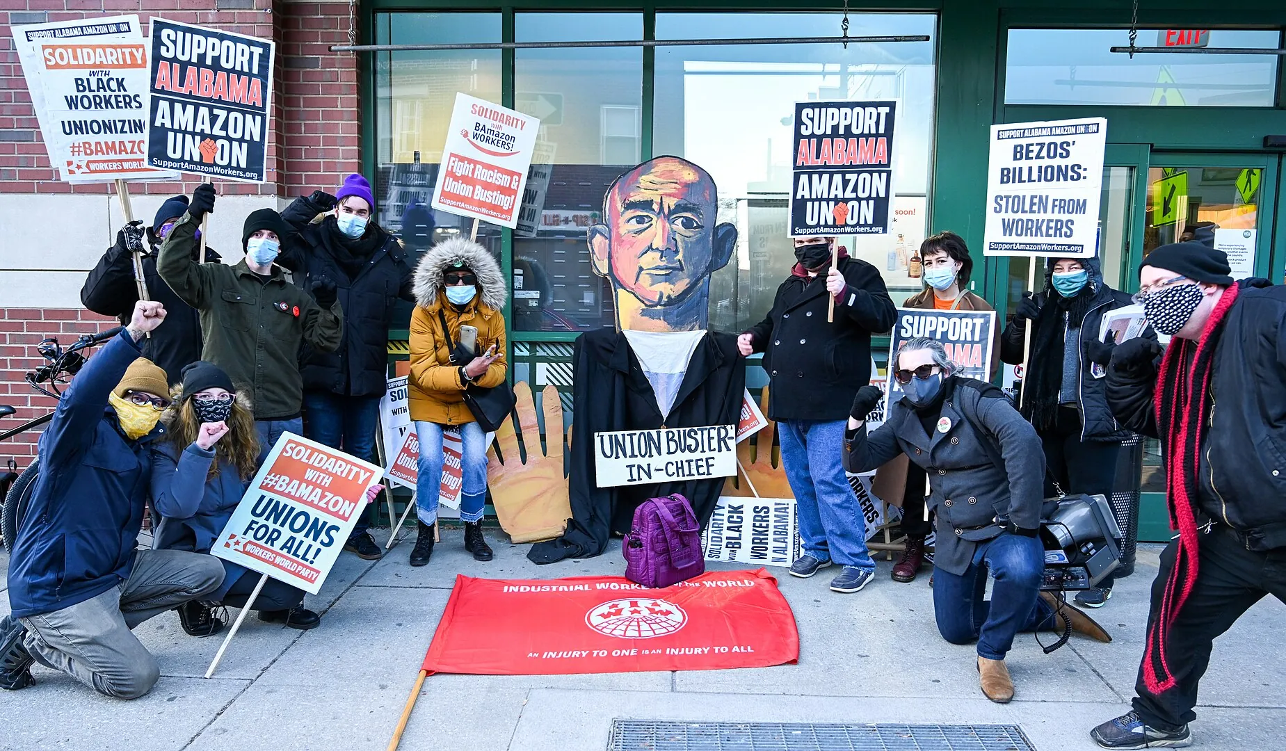 Amazon steht seit Jahren in der Kritik, unter anderem wegen der schlechten Arbeitsbedingungen im Logistikbereich des Unternehmens. Foto: Joe Piette, Philly Supports Alabama Amazon Workers – Picket Line, March 5, 2021-004, CC BY-SA 2.0