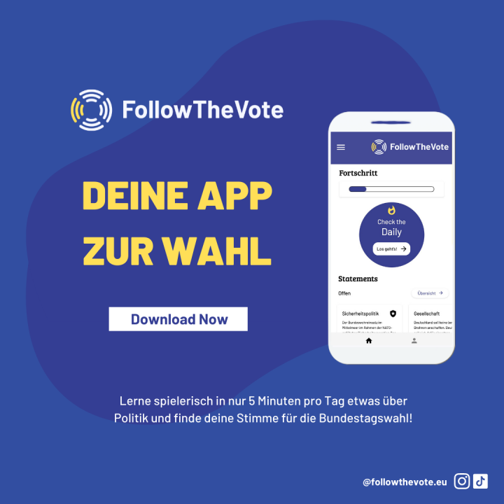 FollowTheVote wants to present politics in a straightforward, factual & entertaining manner. The app combines political engagement with gamification and primarily targets young people.