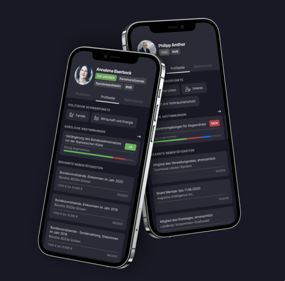 Anyone interested in using the app receives a statement of politicians and can compare their own political beliefs with the positions and demands of the political parties – in just five minutes per day. The project is supported by Wikimedia Deutschland’s Accelerator UNLOCK and translates complex topics into plain, accessible language, thereby nurturing the abilities for critical political analysis. The aim is to boost political knowledge, engagement and also voter turnout. All results from FollowTheVote are available under a free licence.
